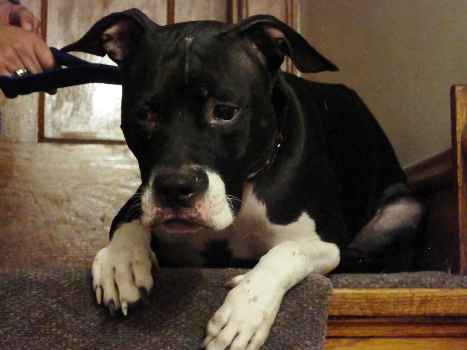 Kyra, a handsome 3-year-old black-and-white pit bull, was bundled into blankets and lifted into Lydia’s car while Katie called the number on the tag.